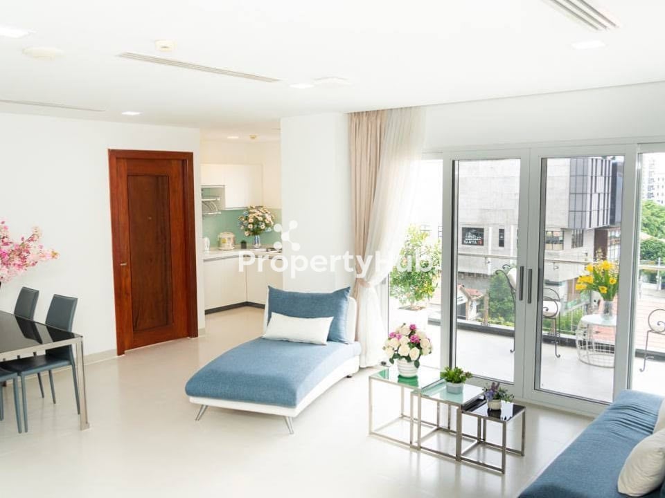 This spacious 2-bedroom, 2-bathroom apartment in BKK1 offers 110 sqm of elegant living space, fully furnished and move-in ready for immediate occupancy. The thoughtfully designed layout provides a bright and airy atmosphere, complemented by a private balcony showcasing beautiful city views — perfect for relaxing after a long day or enjoying your morning coffee.
