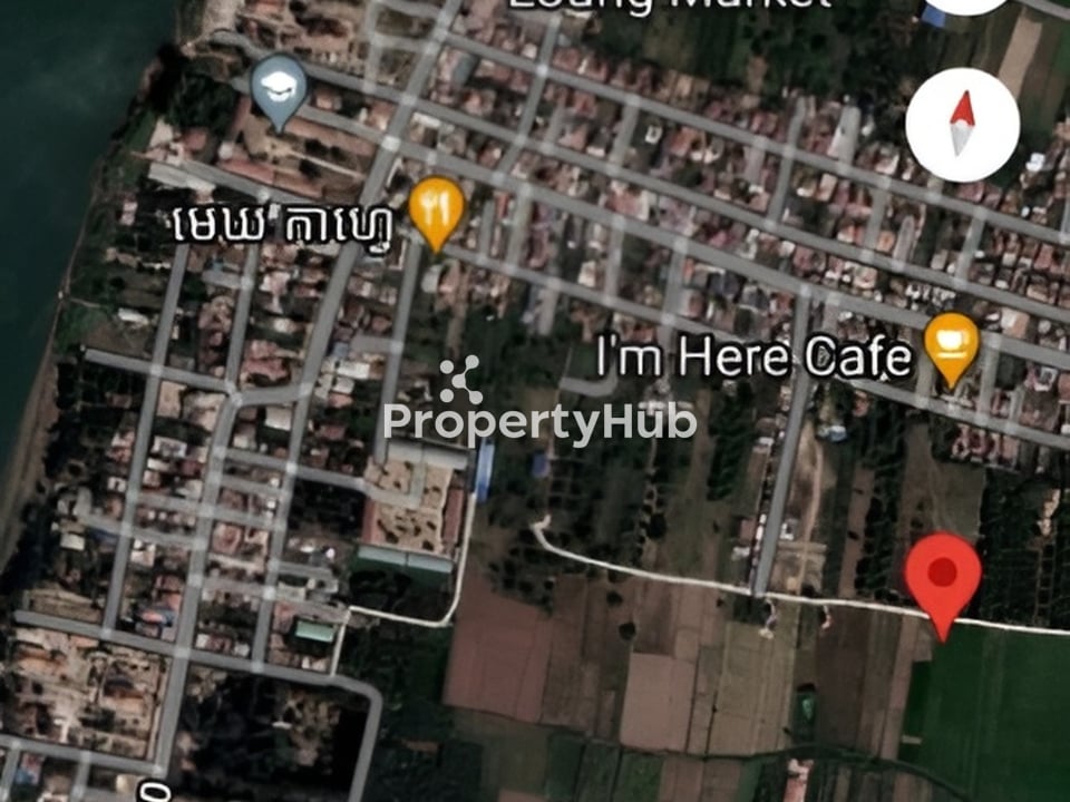 ដីស្ថិតនៅក្បែរភូមិ ទំហំ ១៣ម x ១៣០ម ខាងមុខជាប់ផ្លូវ8ម ខាងក្រោយជាប់អូរ ។ ចម្ងាយប្រហែល600m ពីទន្លេមេគង្គ ផ្សារព្រែកលួង និងសាលាព្រែកលួង។
