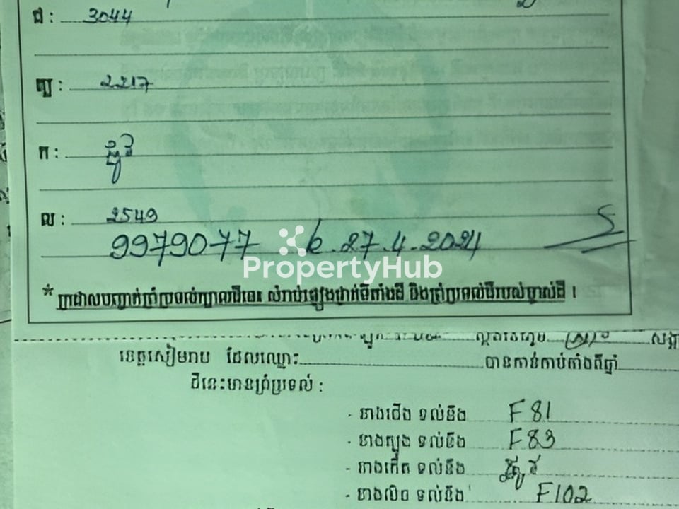 ដីលក់ ម្ចាស់ត្រូវការលុយបន្ទាន់ តម្លៃកក្រោមទីផ្សារច្រើន%
