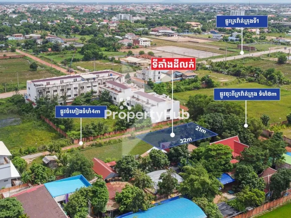 This residential land for sale in the Sala Kamreuk area spans 688 square meters and is conveniently located just 100 meters from Ring Road 01. With its prime positioning, this property represents an excellent investment opportunity. You can build a boutique, apartments, private villas, or holiday home for rent, catering to the growing demand from both residents and tourists. This location offers a perfect blend of accessibility and tranquility, allowing for a comfortable lifestyle. With the rising popularity of the Sala Kamreuk area, you can expect strong rental yields and long-term appreciation in property value. Don't miss out on this fantastic opportunity to invest in a thriving neighborhood.