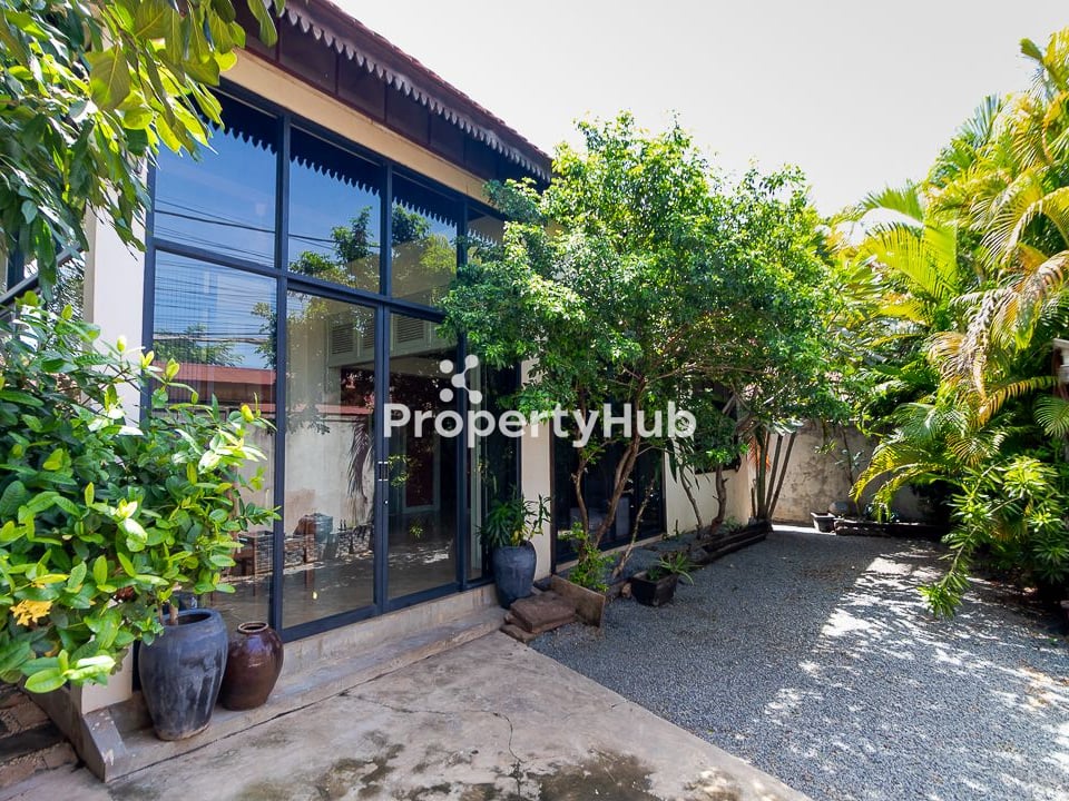 This charming private villa combines traditional Khmer and modern Western design, located just 140 meters from National Road 6 in Sala Kansaeng Village, Svay Dankum Commune, Siem Reap City.