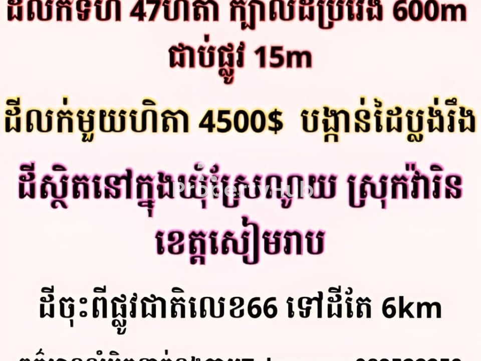ដី47ហិតាលក់ក្នុងខេត្តសៀមរាប