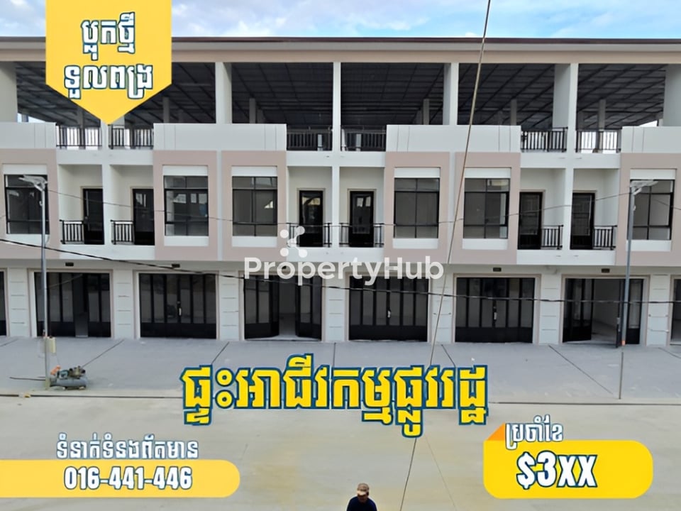 ប្លុកថ្មីទួលពង្រ ផ្ទះអាជីវកម្មផ្លូវរដ្ឋ តម្លៃជាង$7xxxx ប្រចាំខែតែ$399