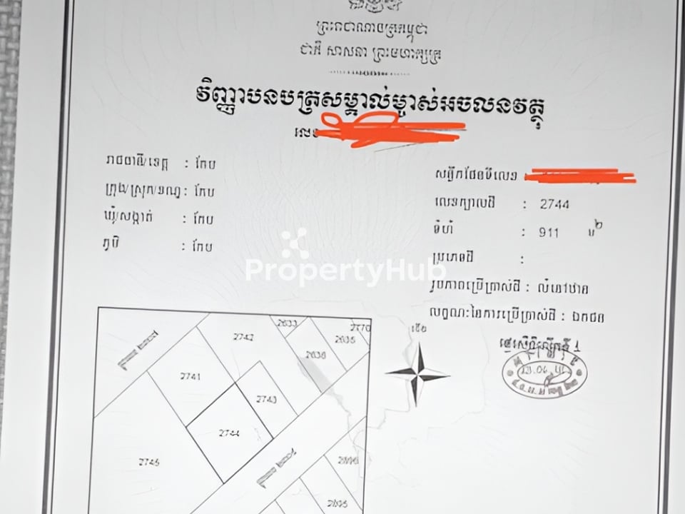 ដីលក់ ជិតឆ្នេរកម្រិតខ្ពស់2700m ខេត្តកែប