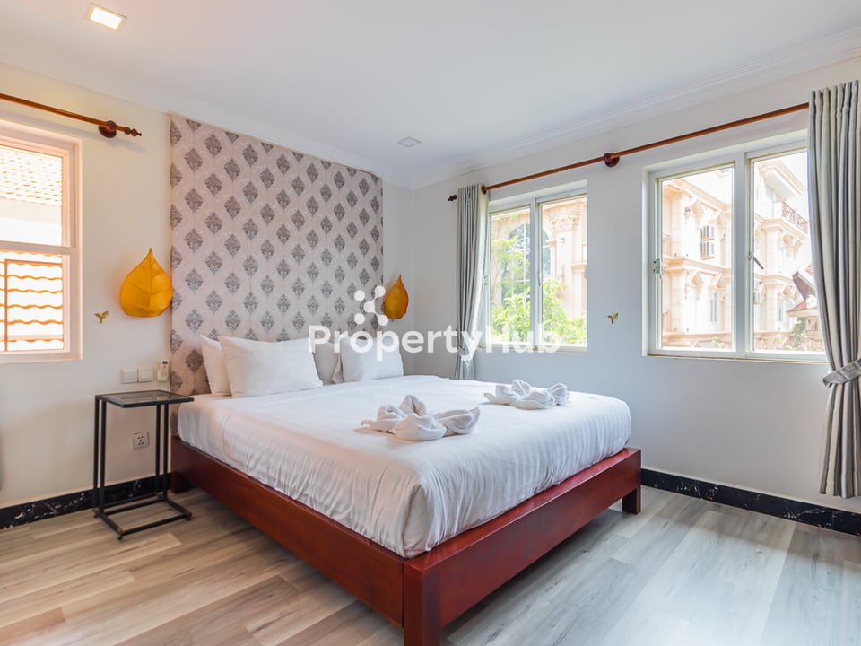 Discover a comfortable and modern 1-bedroom apartment with a pool for rent in Siem Reap. This stylish unit features one spacious bedroom, a bright living area, and a fully equipped kitchen, making it perfect for long-term stays or short-term rentals. Residents can enjoy access to a beautiful swimming pool, ensuring a refreshing escape from the tropical heat. Conveniently located in a safe and quiet neighborhood, the apartment is just a short drive from Pub Street, the Old Market, and Angkor Wat. With 24-hour security, parking, and high-speed Wi-Fi, this apartment offers both comfort and convenience for those looking to settle in Siem Reap.