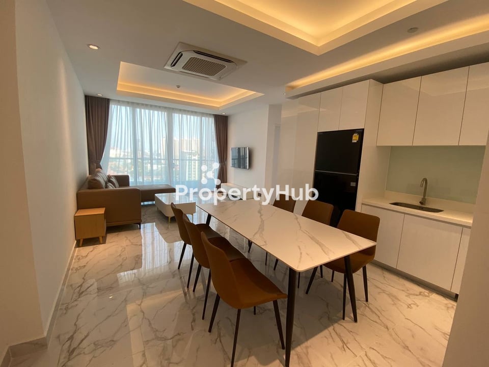 This modern 2-bedroom apartment for rent at J Tower 2 offers comfortable city living with a net area of 91 sqm. Situated on a high floor, the unit is fully furnished with stylish furniture and practical layouts, providing both comfort and functionality. The apartment features spacious bedrooms, contemporary bathrooms, and an open-plan living and dining area, making it ideal for young professionals, couples, or small families looking for a ready-to-move-in home in Phnom Penh.