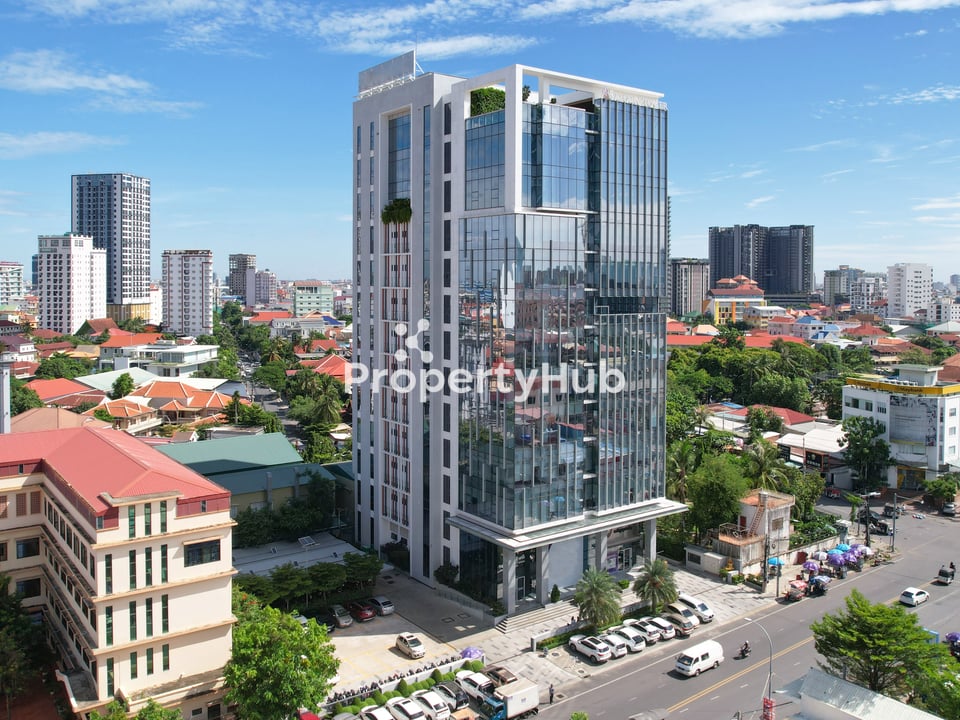 Four modern office units (98.5–245.8 sqm) are now available on the 8th floor at a rate of USD 15/sqm. Located just 5 minutes from TK Avenue, Samaky Tower offers light-filled, flexible workspaces with high-speed elevators, secure parking, 24/7 security, fire-safety systems, backup power, and energy-efficient lighting.