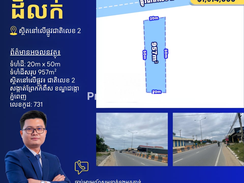📌 លើផ្លូវជាតិលេខ2 សង្កាត់ព្រែកកំពឹស ខណ្ឌដង្កោ ភ្នំពេញ