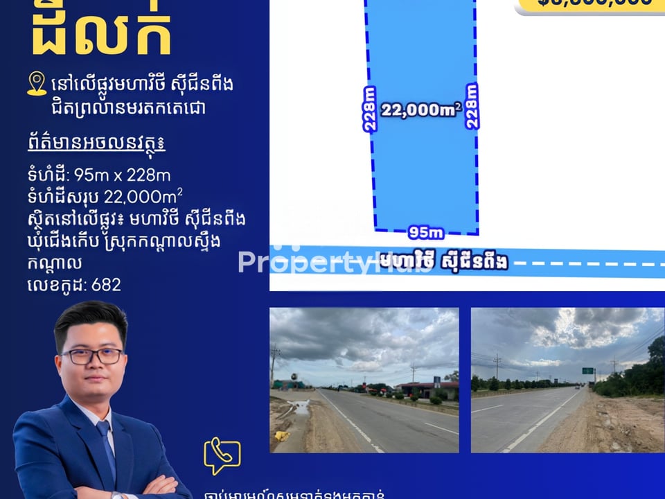 ដីលក់លើផ្លូវមហាវិថី សុី ជីនពីង 15នាទីពីព្រលានថ្មី