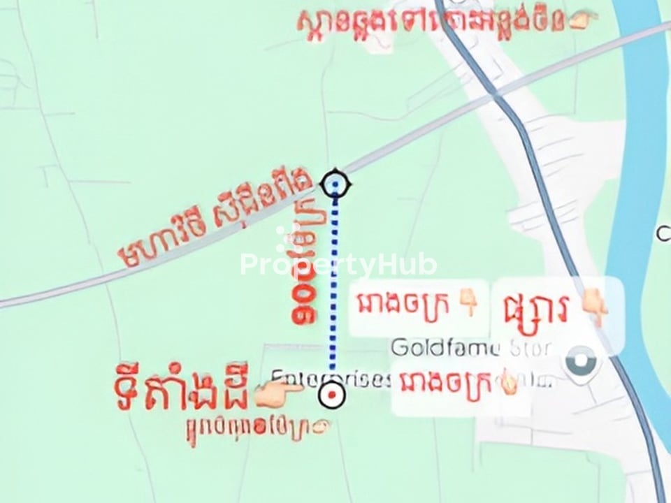 ដីជាប់ផ្លូវប៉េតុង6ម៉ែត្រចុះពីផ្លូវក្រវ៉ាត់ក្រុង900ម៉ែត្រ