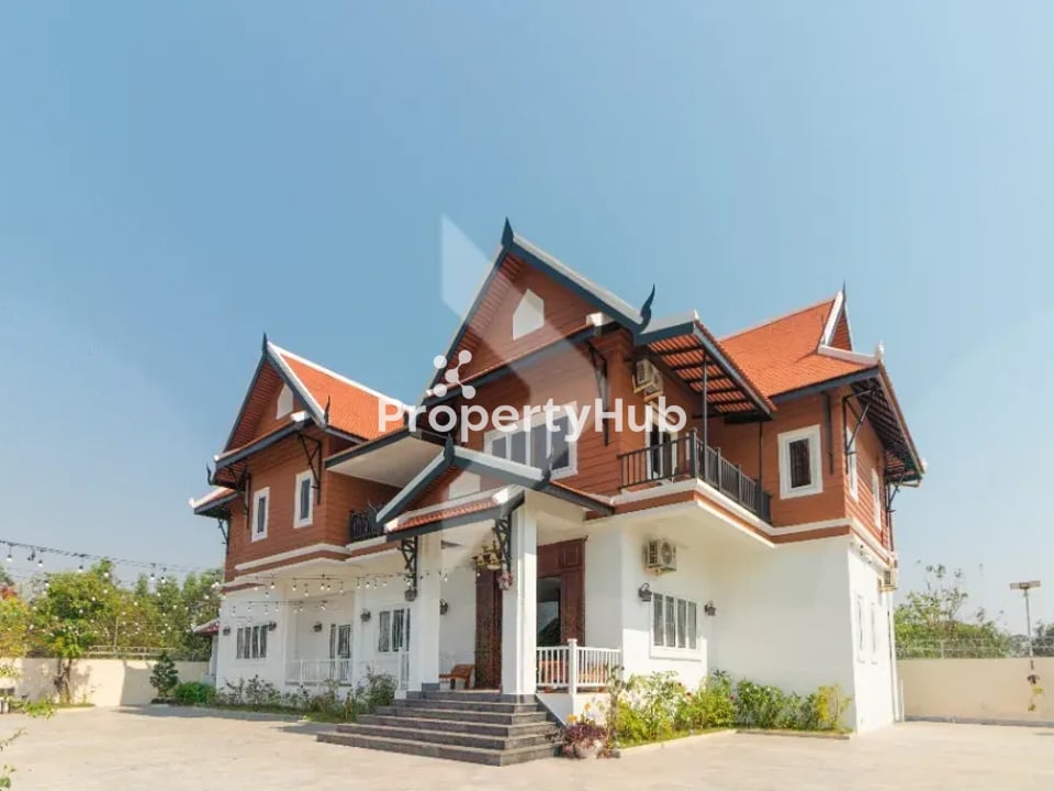 This stunning 6-bedroom modern wooden house in Svay Dangkum Commune is an ideal family home, offering both space and style. The property sits on a generous 60m x 24m lot, providing ample room for outdoor activities and future landscaping projects. The house itself measures 20.7m x 12.5m, featuring a bright, open-concept design that creates a warm and inviting atmosphere.