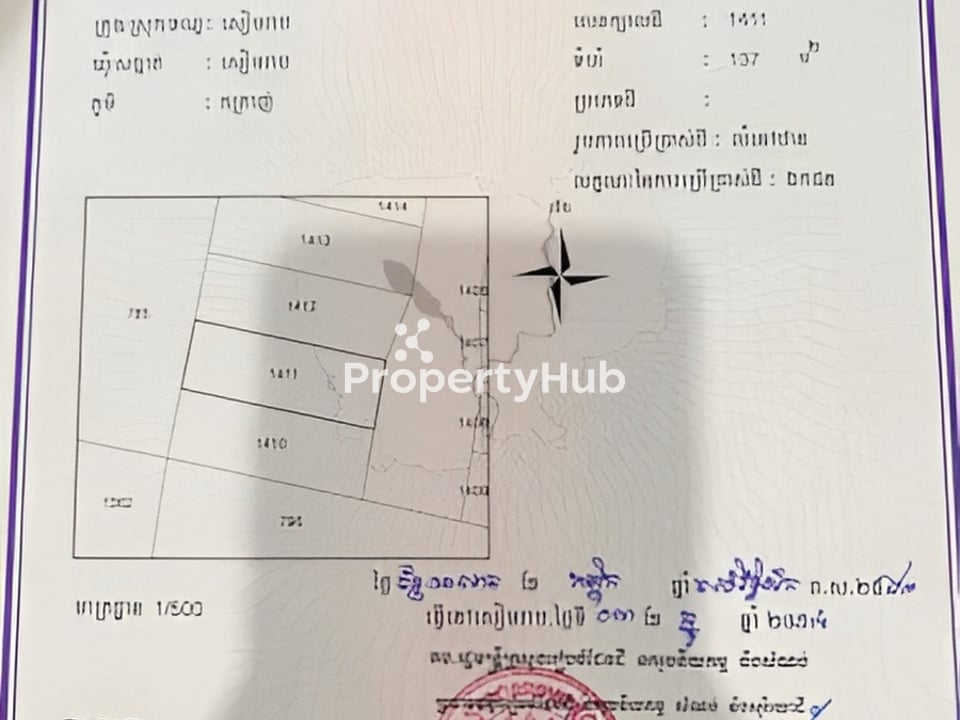 ដីកណ្តាលក្រុងសៀមរាប ជិតផ្សារចាស់ pub street ក្រវ៉ាត់ក្រុង1