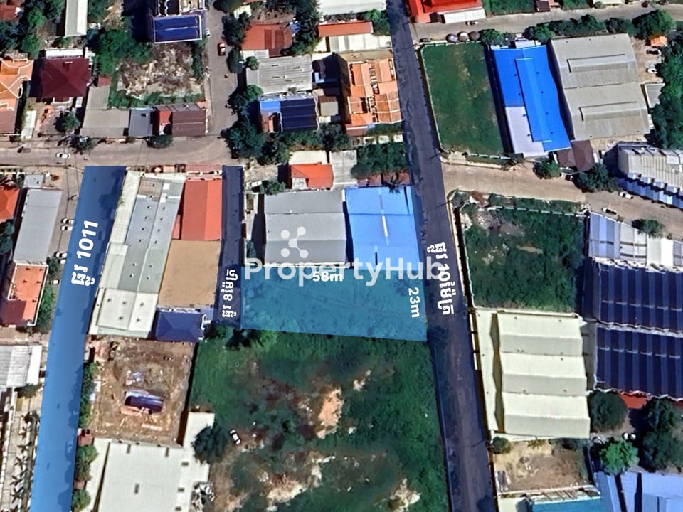 This exceptional 1,245sqm land plot represents a rare leasing opportunity in the heart of the prestigious Phnom Penh Thmey district. A standout feature of this property is its dual-entrance access at the front and back, providing unmatched operational flexibility and superior traffic flow for large-scale businesses. With a substantial 23-meter frontage and a depth of 58 meters, the site offers a massive, well-proportioned canvas for a high-end showroom, a logistics-heavy retail center, or a flagship corporate headquarters.